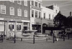 This scene looks similar today. The Halifax has been replaced by a phone shop. The Halifax was earlier the Leeds Permanent Building Society. My father-in-law was the Branch Manager there for several years in the 1980s.