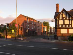 Here is what the scene looks nearly thirteen years later. In May/June 2008, a bus "gate" was made here for use during peak times. Leisure Music has been replaced by Connexions, the sofa shop (before that a motorbike shop) was knocked down and replaced by a Hindu Community Centre and the Pub opposite has been closed and boarded up.
