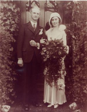 Harry, my grandfather, married for the second time on 21st November 1931 at St Editha's Parish Church, Tamworth. His bride was May Brain, who lived in Glascote Heath with her parents. There are three photos of the wedding in the Photo Album on pages 31-33. Below is another photo of the happy couple. My father was born a few years later.